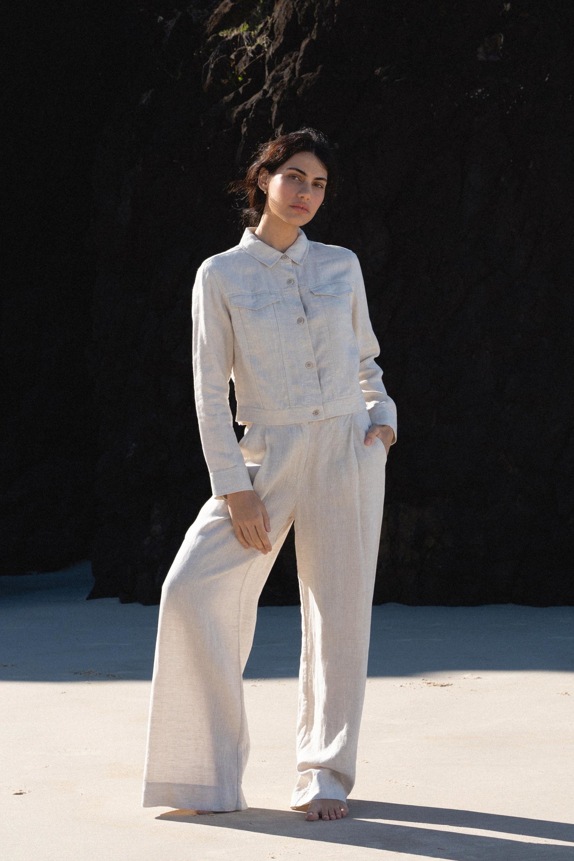 Our OLI linen pants are crafted from 100% EUROPEAN FLAX. These full length pants feature a straight wide leg, side pockets, front zipper, back leg seams, and an elastic back waist band. Perfectly put together with French seam detailing.