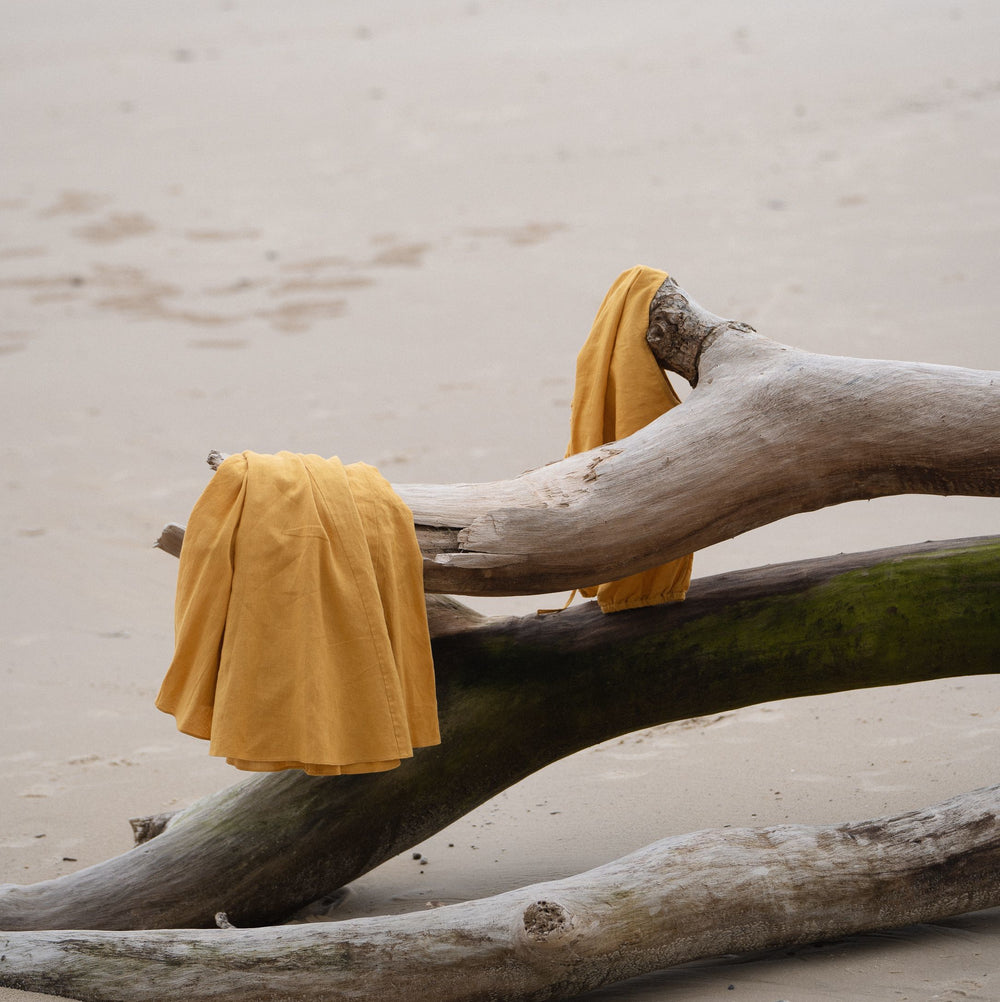 We produce our own linen fabric using EUROPEAN FLAX™ certified linen flax, known for its timeless aesthetic and minimal environmental footprint. Linen requires significantly less water and pesticides than cotton or polyester, and is fully biodegradable and compostable. Every thread is sustainable, traceable, and crafted to last.